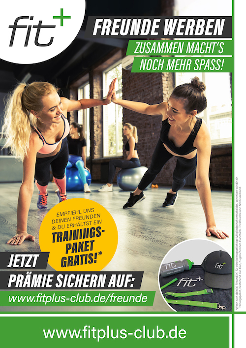 Zusammen macht’s noch mehr Spaß! Empfiehl uns deinen Freunden und du erhältst ein exklusives Trainingspaket von fit+.